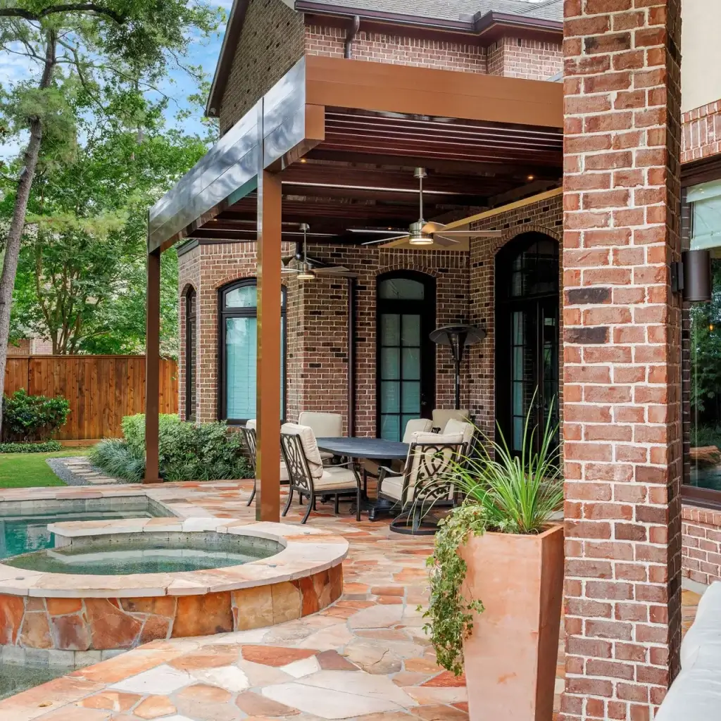 Experience the ultimate outdoor control. The R-BLADE™ is a smart pergola that lets you command the sky. Its motorized louvers adjust effortlessly, shielding you from the harsh Texas sun or sudden downpours. Plus, its sleek design complements any home style.