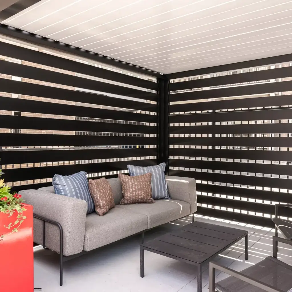 A classic with a contemporary twist. The R-Breeze™ offers a timeless look with partial shade. Its fixed louvers provide a sleek, streamlined appearance.